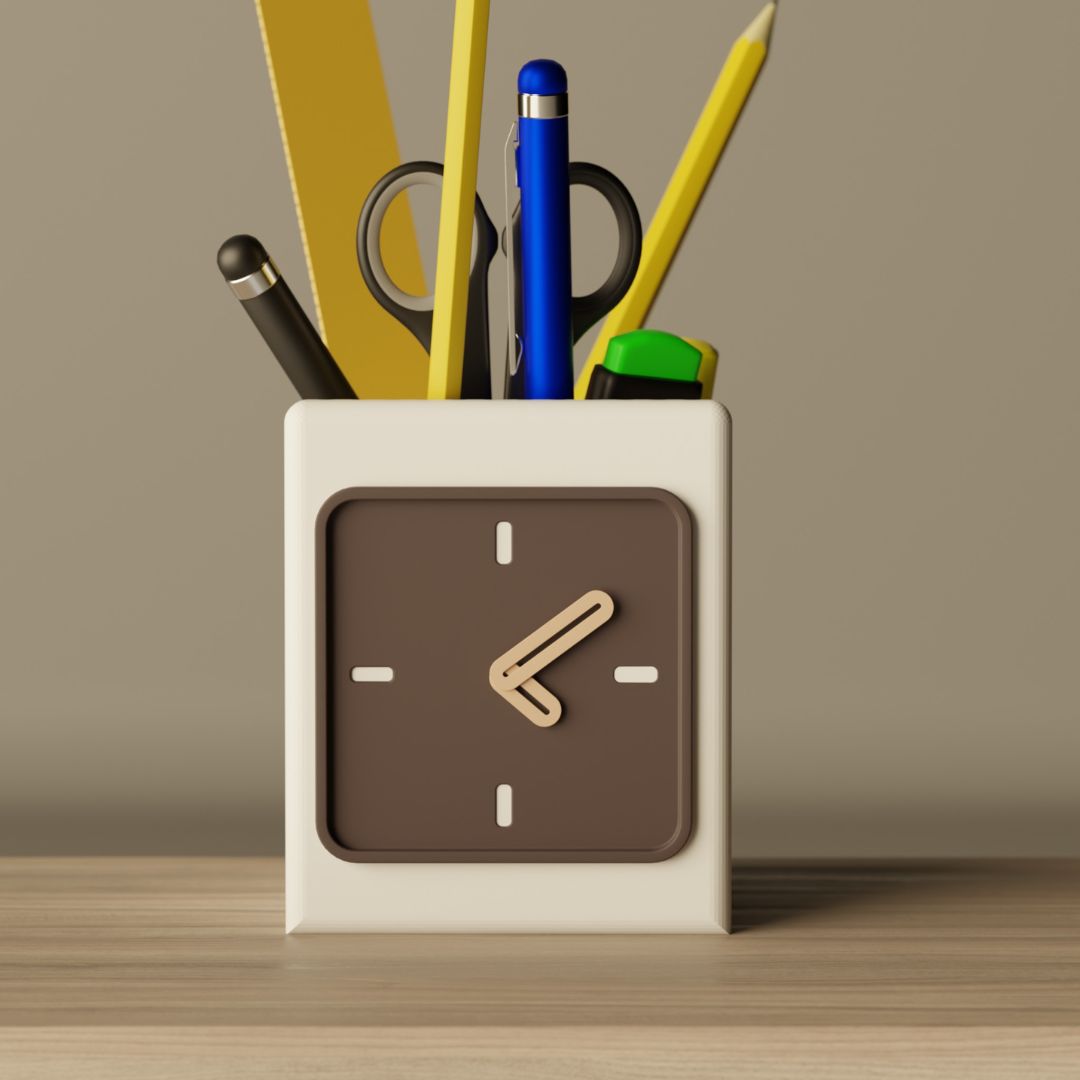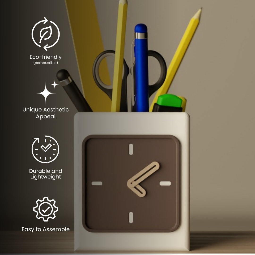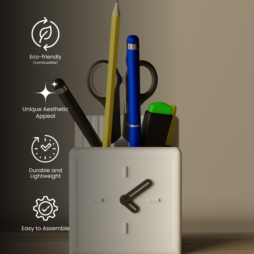 - 2-in-1 Utility: Smart desk organizer with an integrated clock face.