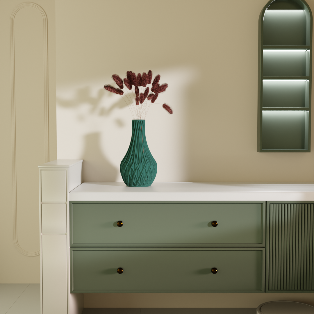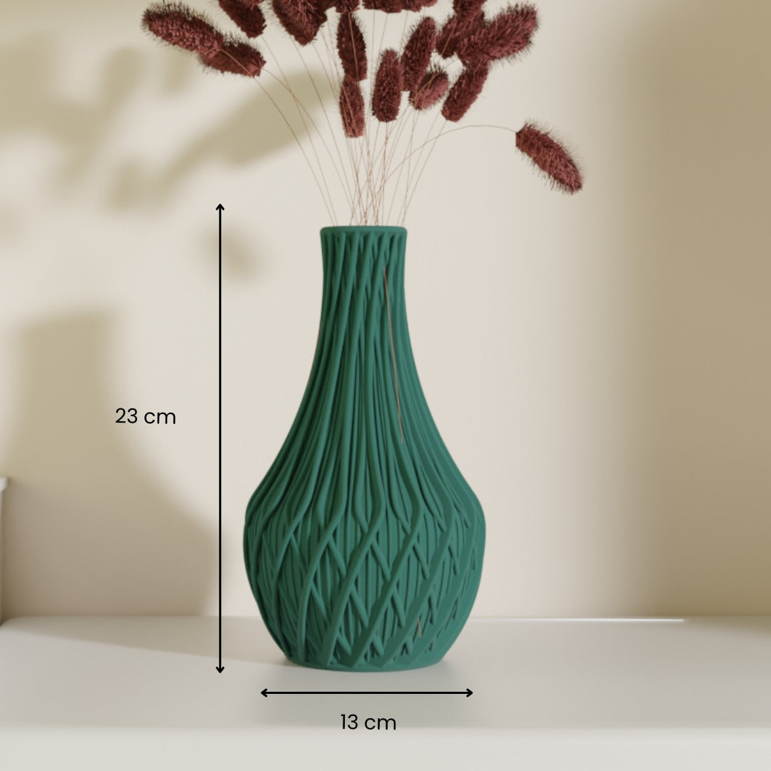 Shape: Elongated teardrop form with a narrow neck and a wider base, creating an elegant and balanced silhouette.