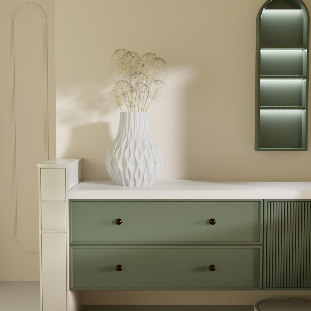 - Space: Ideal for shelves, tables, or corners—adds form without crowding the area