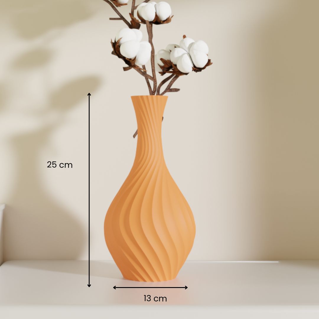 Shape: Teardrop form with a narrow top and wide rounded base, featuring a dynamic spiral twist.