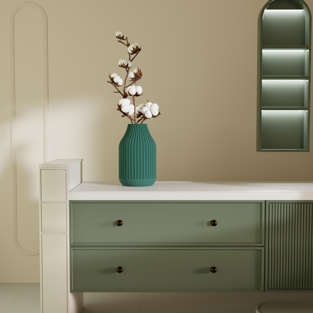 Texture: Smooth matte surface accented with precise vertical ridges that offer depth and character.