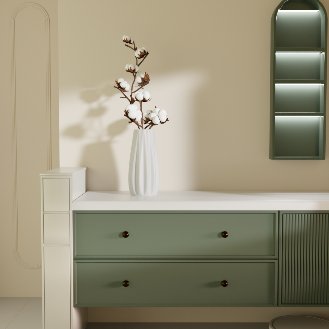 - Shape: Its tall, tapered design adds height and elegance to compact spaces.