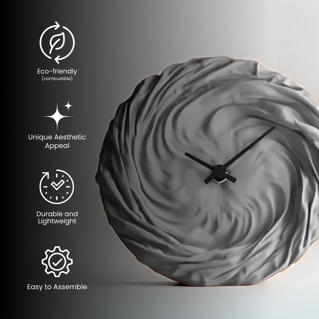 Intricate Twist Cloth Aesthetic: The unique twisted cloth design on the clock’s surface adds a soft, artistic touch, making it a standout piece for modern and elegant spaces.